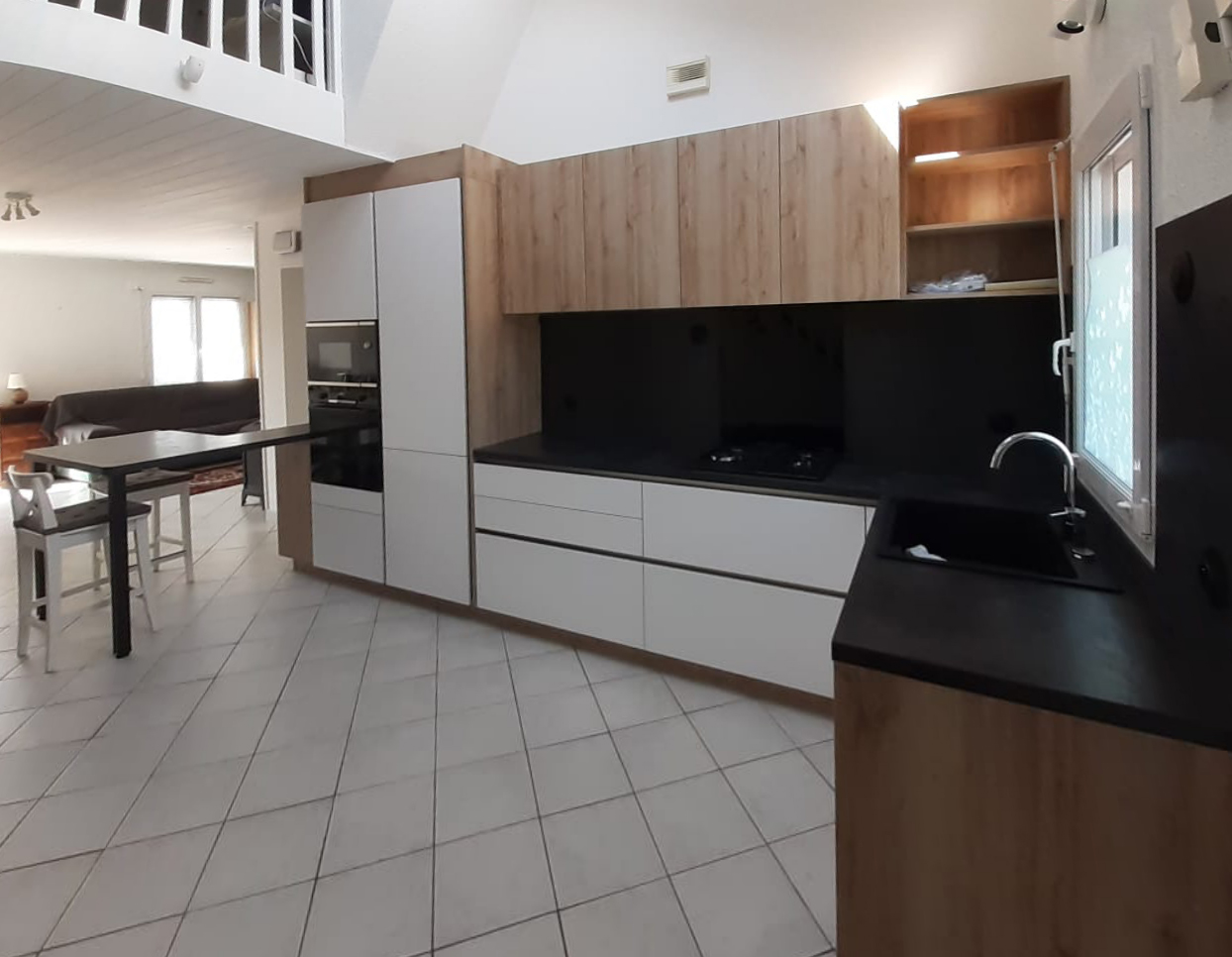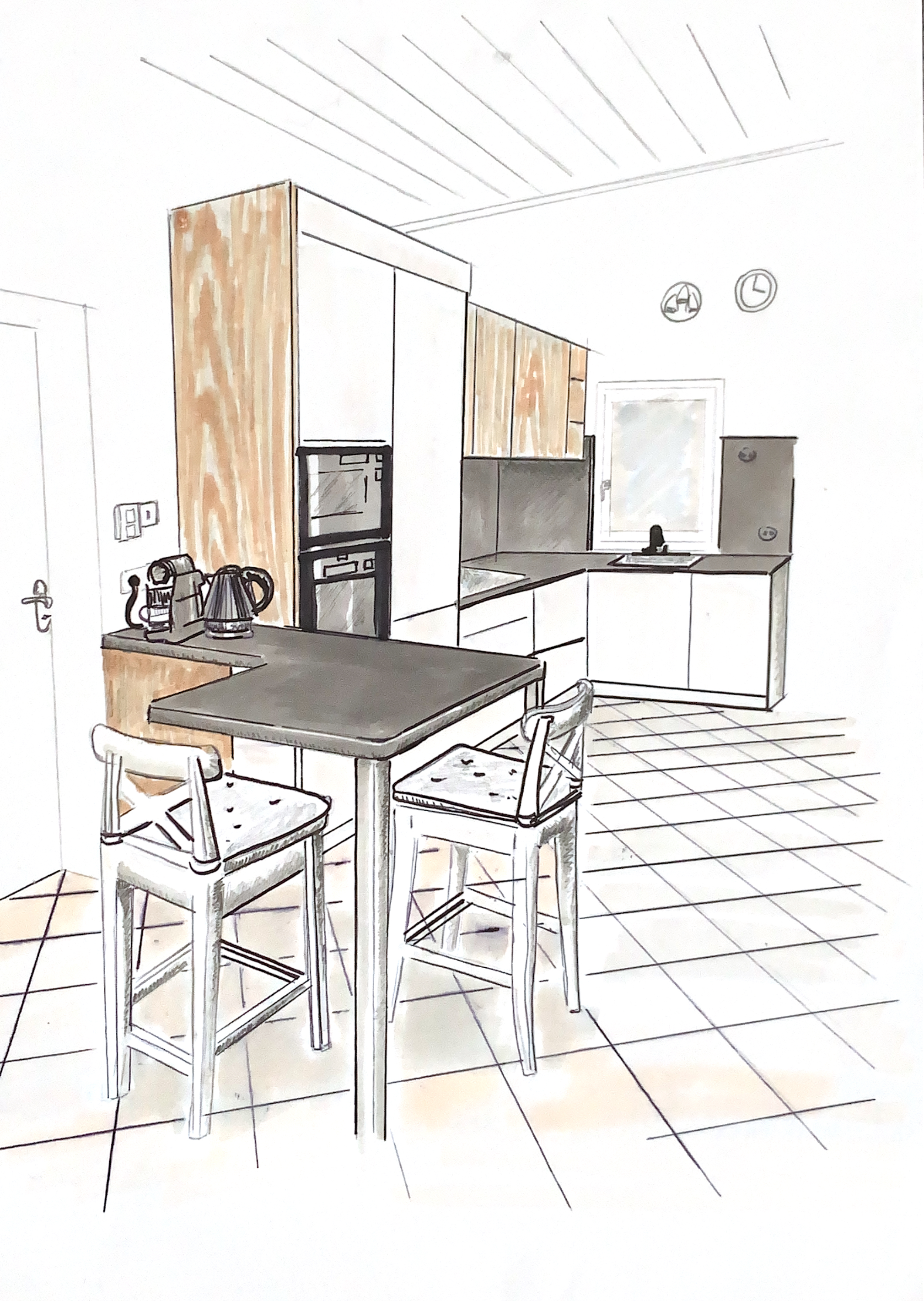 Il s'agissait de rendre cette cuisine plus fonctionnelle, moderne avec un maximum de place sur le plan de travail et redéfinir l'espace "bar".
